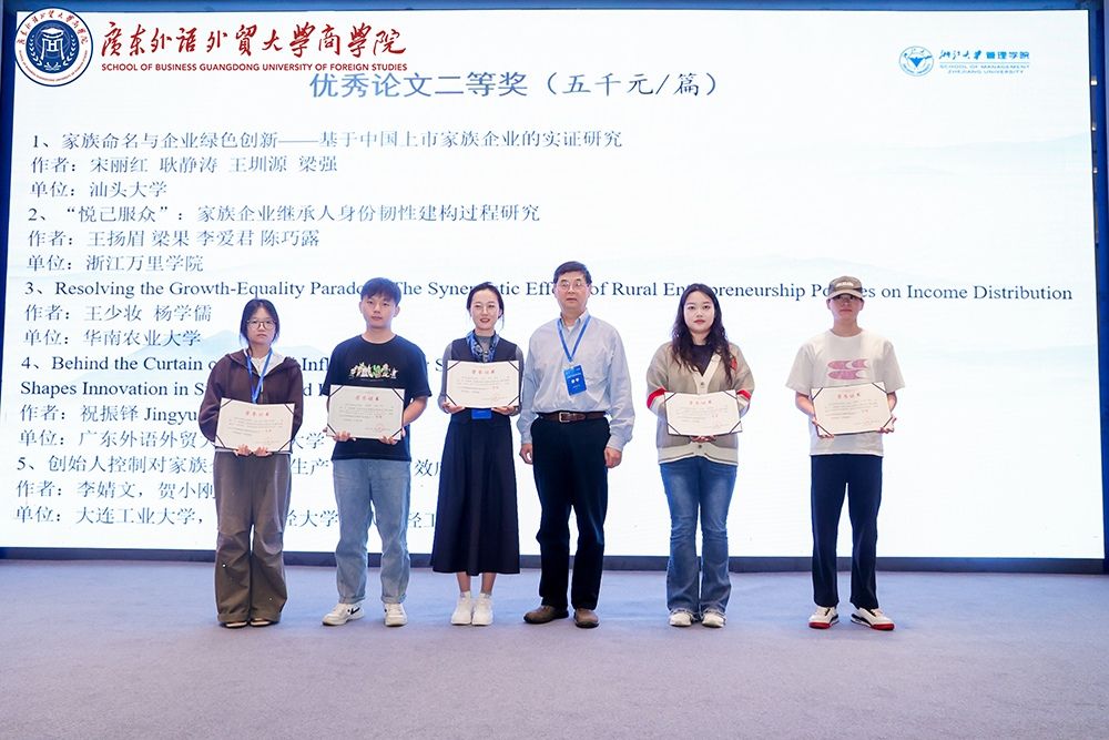 由宋丽红教授、梁强教授及商学院研究生耿静涛、王圳源共同完成的论文《家族命名与企业绿色创新——基于中国上市家族企业的实证研究》获优秀论文二等奖。
