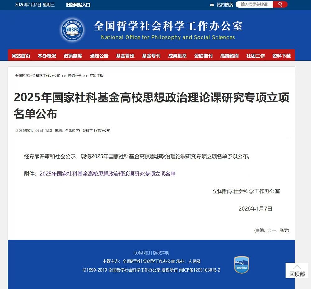 据悉,这是学校第一个国家社科基金思政专项立项,是马院2025年获批的第三个国家社科基金项目,也是刘兴云斩获的第二个国家社科基金重点项目。在2026年“十五五”规划开局的关键节点,这一成果不仅彰显了刘兴云深厚的学术积淀与研究实力,更标志着学院在思政课教学研究领域的持续突破,为新征程献上了学科建设的“开门红”,以扎实的标志性科研成果为“十五五”开好局、起好步奠定了坚实基础。